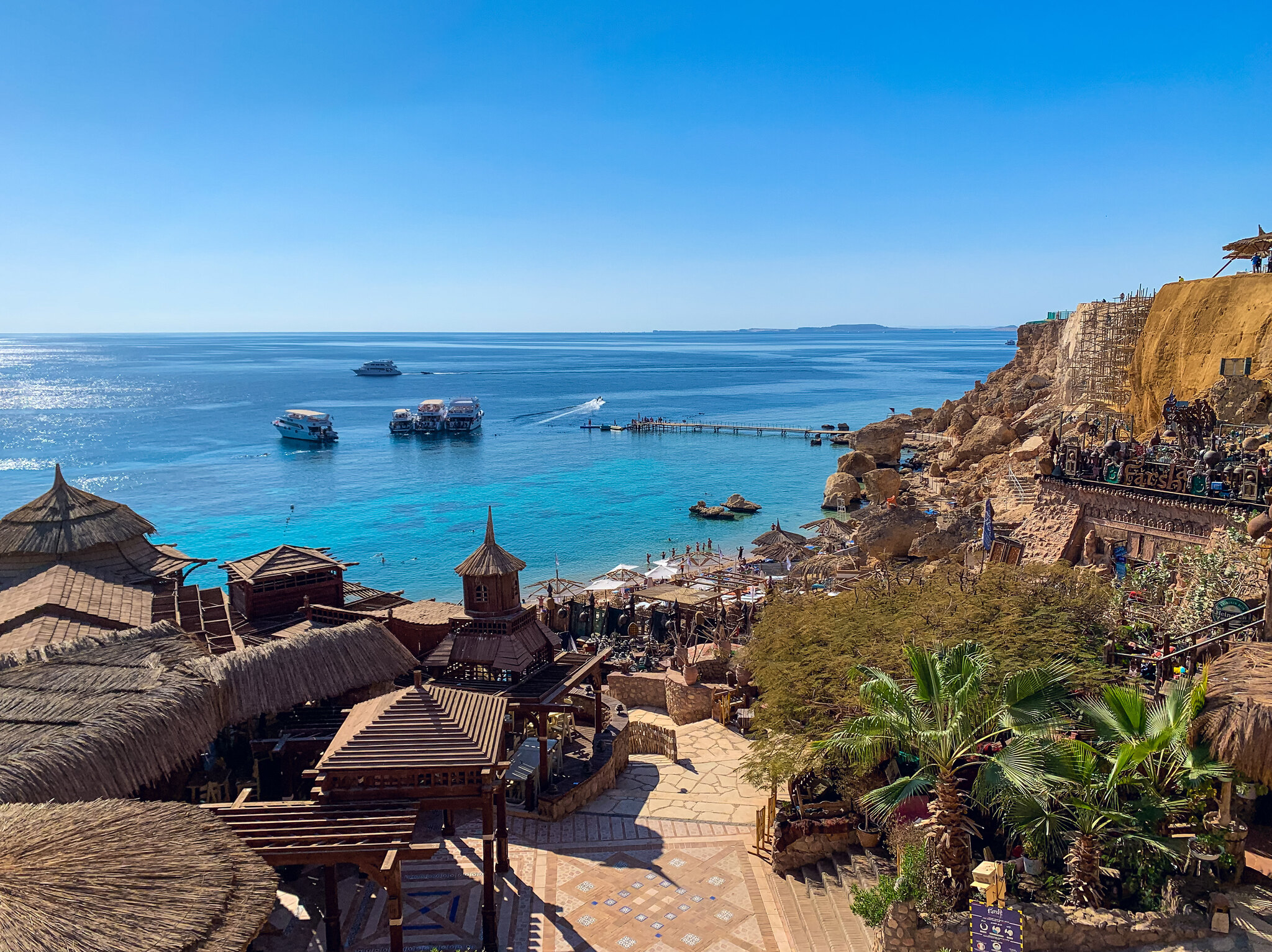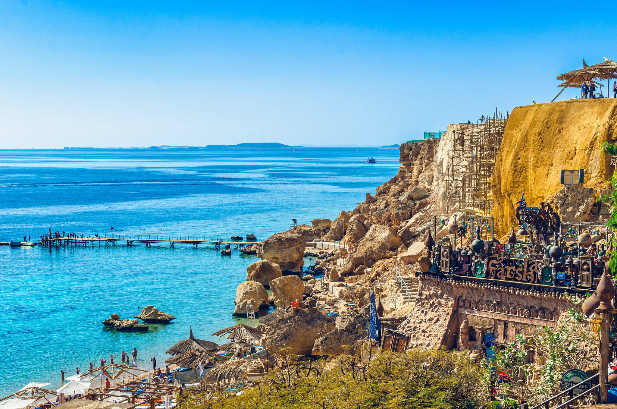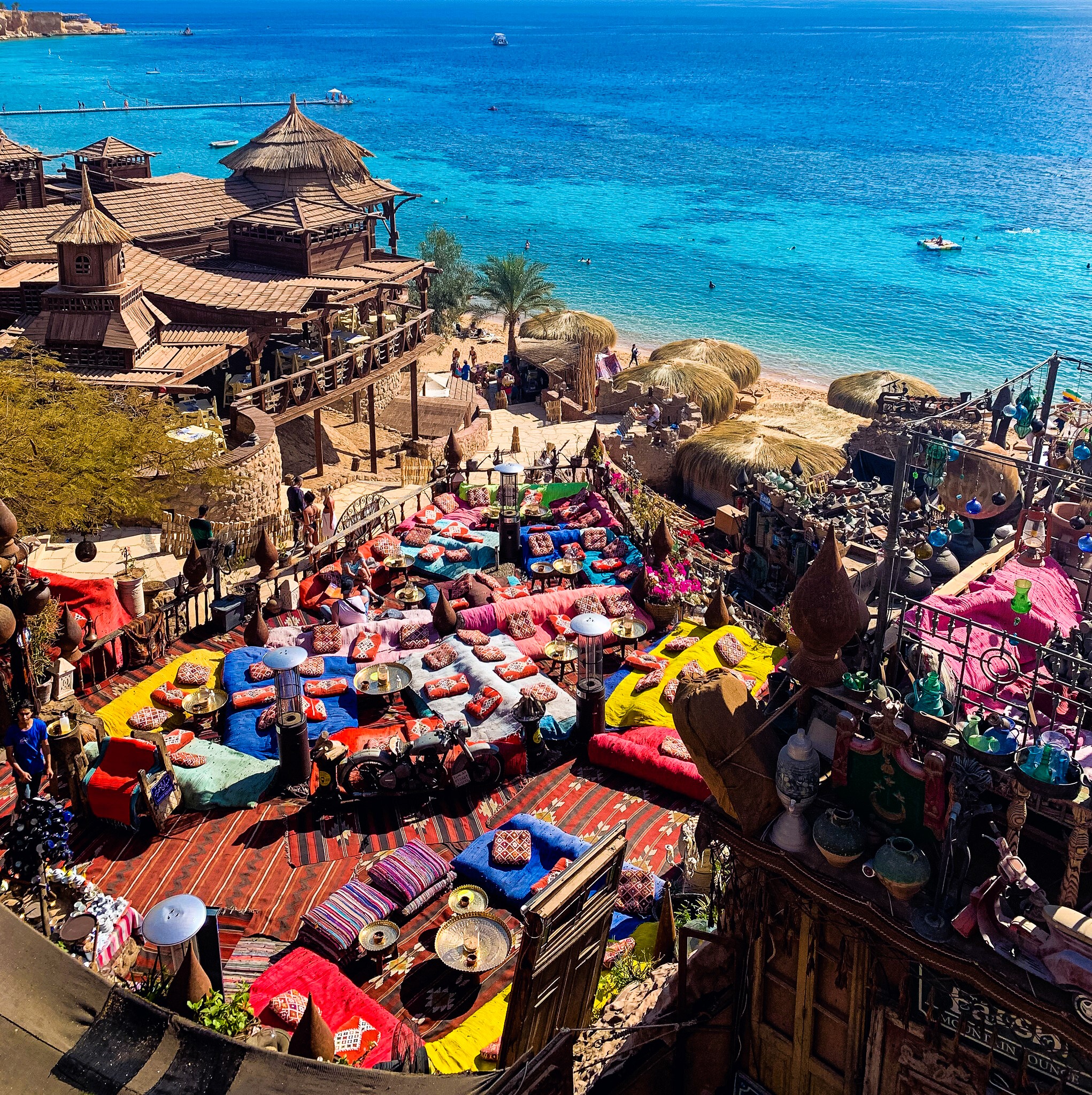 Iconic Farsha Café Sunset View: Visit the most famous spot in Sharm El Sheikh! Relax in the café’s unique tiered seating carved into the cliffside and witness a breathtaking sunset over the Red Sea, combined with the fresh air and a beautiful atmosphere.