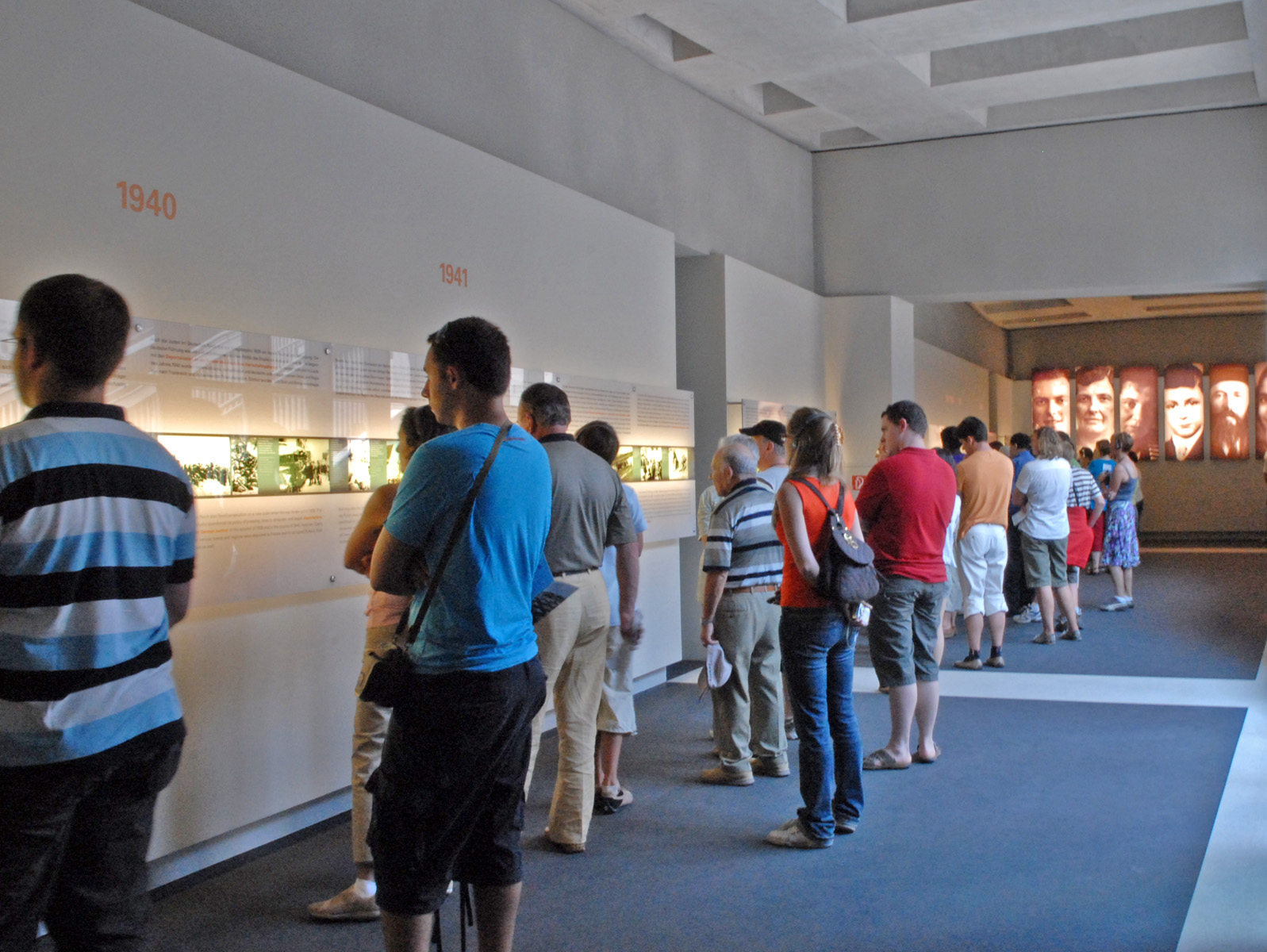 Beneath the field of stelae lies the Information Center, which provides historical context and personal stories of the Holocaust. The center features exhibits on the persecution and extermination of European Jews, including photographs, letters, and testimonies from survivors. - The Room of Dimensions
