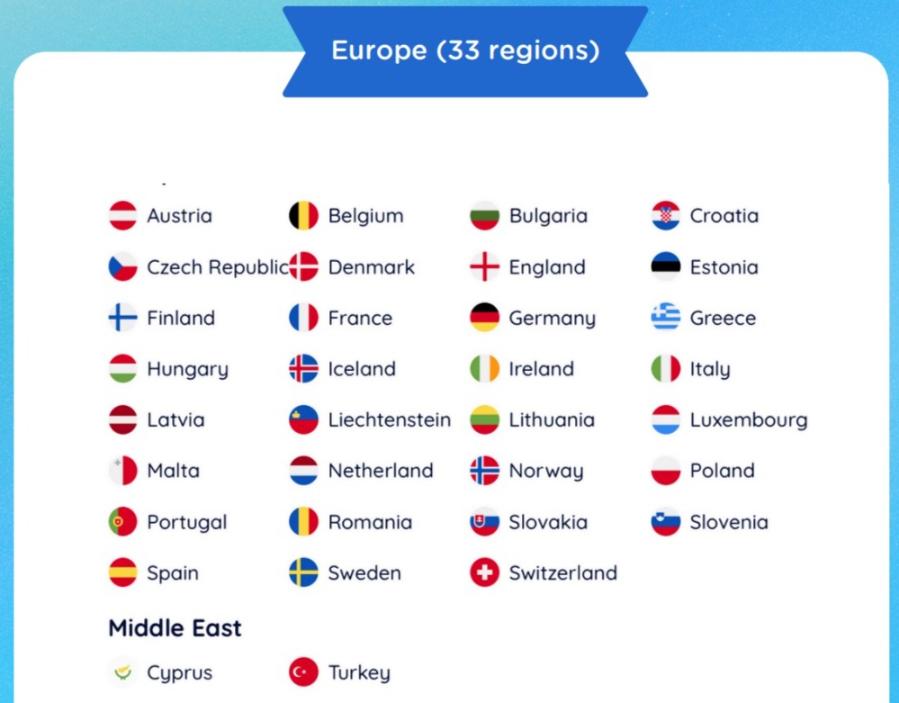 33 European regions eSIM
