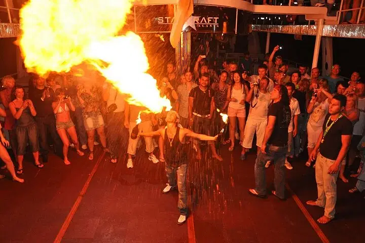 Get ready for an electrifying evening on the Mediterranean with the Alanya Starcraft Night Disco Yacht Cruise ! This one-of-a-kind experience combines luxury, entertainment, and breathtaking views for an unforgettable night out. Step aboard the stunning 4-deck Starcraft Yacht , where vibrant music, a high-energy foam party, and mesmerizing fire shows await. Sip on unlimited soft drinks as you dance under the stars and soak in the lively atmosphere. With roundtrip transfers included, this cruise offers the ultimate stress-free nightlife adventure in Alanya.