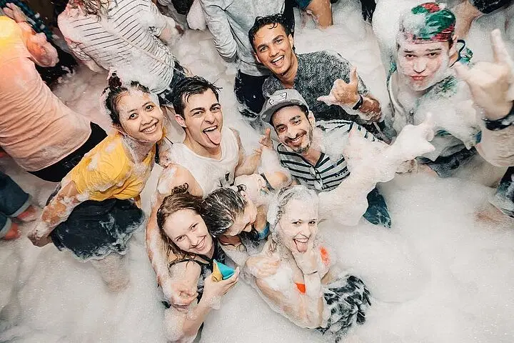 • Dive into the excitement of a lively foam party, where music, lights, and bubbles create an unforgettable atmosphere.